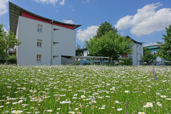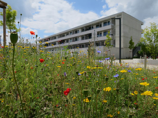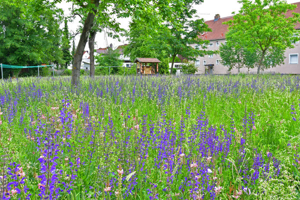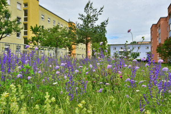 ...ist es die Stadtbevölkerung für den Bienenschutz zu sensibilisieren und zu mobilisieren, Bienenlebensräume zu optimieren und neu zu schaffen. Dabei stehen sowohl die Honigbienen als auch die vielen Wildbienenarten im Fokus. Die GWG Ingolstadt gestaltet seit mehr als 10 Jahren Blühflächen in ihren Grünanlagen und stellt dadurch Nektar und Pollen für die fleißigen Honigsammlerinnen und die bedrohten Wildbienen zur Verfügung. In zwei großen Bienenhotels steht Brutraum für reichlich Nachkommen zur Verfügung.